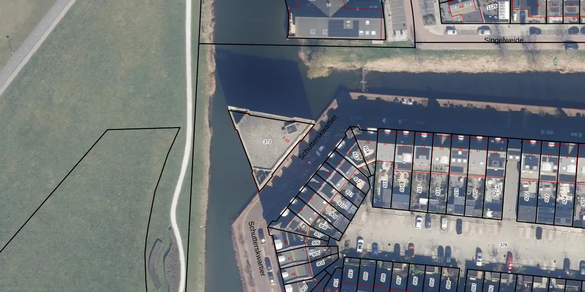 Het perceel waarop Schutterskwartier 2 staat heeft een oppervlakte van 370 m². Dit is een groot perceel. De perceeloppervlakte wordt geregistreerd door het Kadaster. Gedetailleerde informatie over de maten van dit perceel kunt u vinden in het rapport Kadastrale kaart met maatvoering van Schutterskwartier 2.