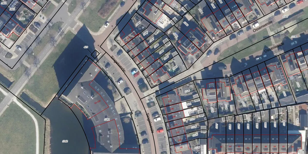 Het perceel waarop Singelweide 112 staat heeft een oppervlakte van 257 m². Dit is een middelgroot perceel. De perceeloppervlakte wordt geregistreerd door het Kadaster. Gedetailleerde informatie over de maten van dit perceel kunt u vinden in het rapport Kadastrale kaart met maatvoering van Singelweide 112.