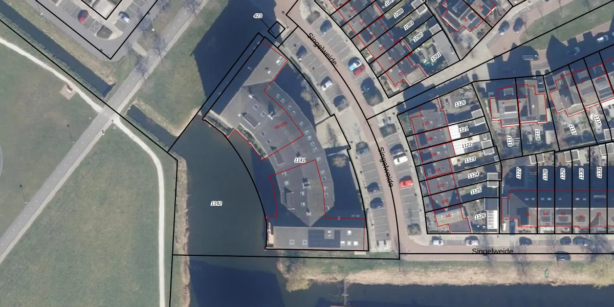 Het perceel waarop Singelweide 131 staat heeft een oppervlakte van 2105 m². Dit is een zeer groot perceel. De perceeloppervlakte wordt geregistreerd door het Kadaster. Gedetailleerde informatie over de maten van dit perceel kunt u vinden in het rapport Kadastrale kaart met maatvoering van Singelweide 131.
