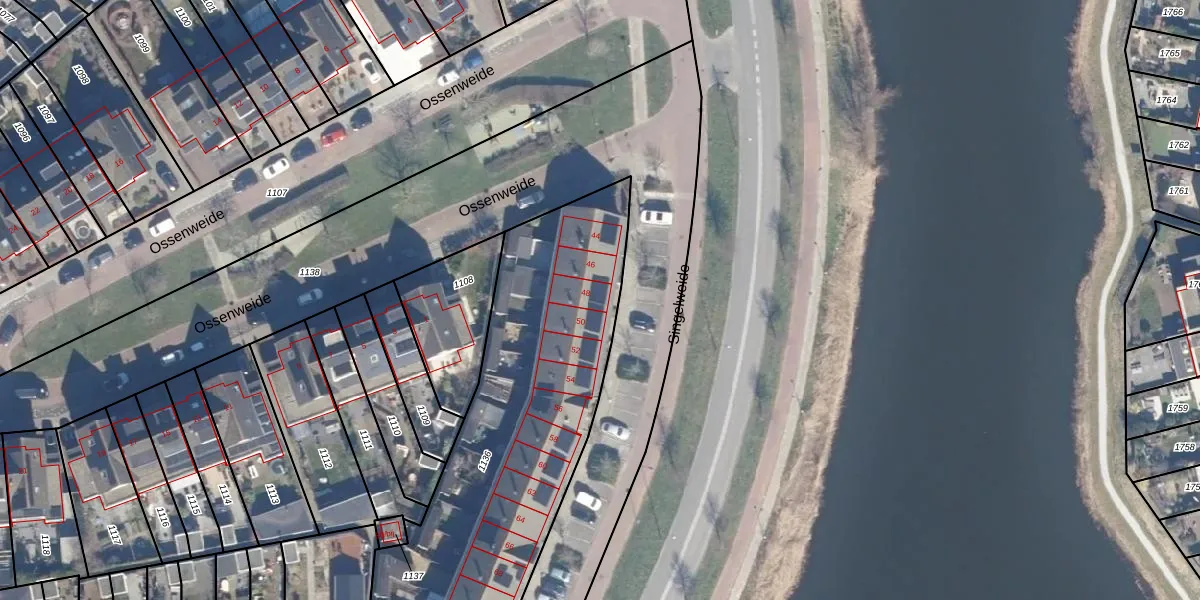 Het perceel waarop Singelweide 48 staat heeft een oppervlakte van 1950 m². Dit is een zeer groot perceel. De perceeloppervlakte wordt geregistreerd door het Kadaster. Gedetailleerde informatie over de maten van dit perceel kunt u vinden in het rapport Kadastrale kaart met maatvoering van Singelweide 48.
