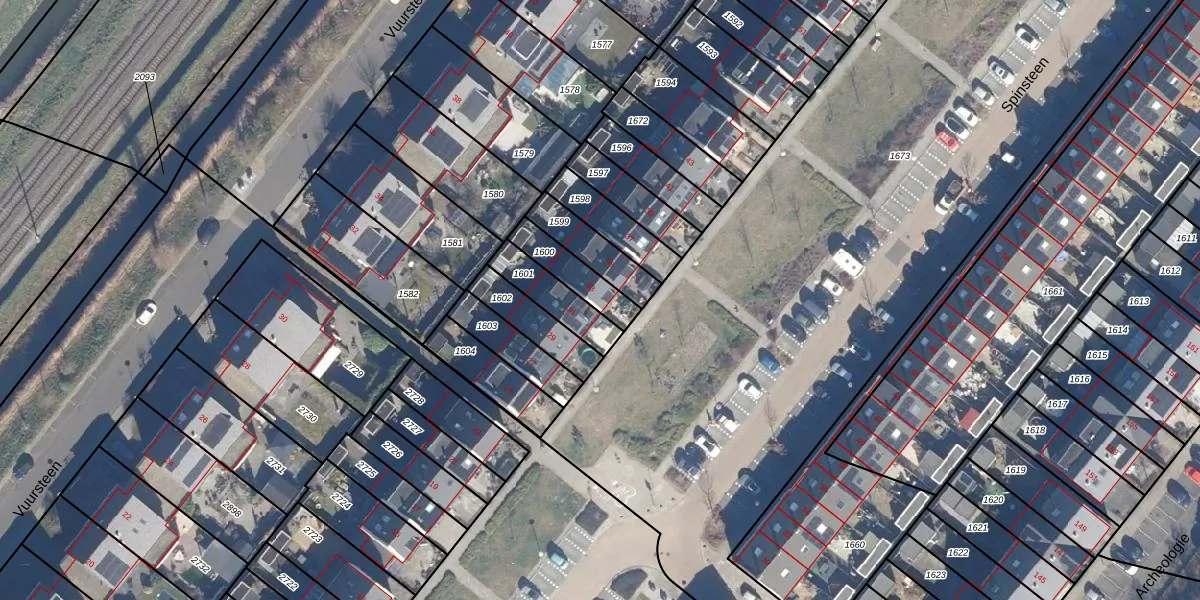 Het perceel waarop Spinsteen 33 staat heeft een oppervlakte van 120 m². Dit is een middelgroot perceel. De perceeloppervlakte wordt geregistreerd door het Kadaster. Gedetailleerde informatie over de maten van dit perceel kunt u vinden in het rapport Kadastrale kaart met maatvoering van Spinsteen 33.