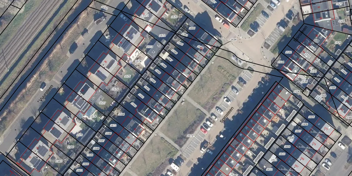 Het perceel waarop Spinsteen 55 staat heeft een oppervlakte van 135 m². Dit is een middelgroot perceel. De perceeloppervlakte wordt geregistreerd door het Kadaster. Gedetailleerde informatie over de maten van dit perceel kunt u vinden in het rapport Kadastrale kaart met maatvoering van Spinsteen 55.