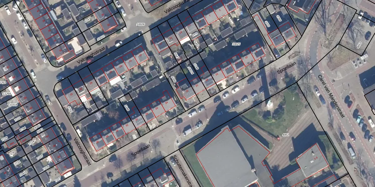 Gebruik de zoekbalk of klik op een perceel voor informatie over de adressen binnen dit perceel.