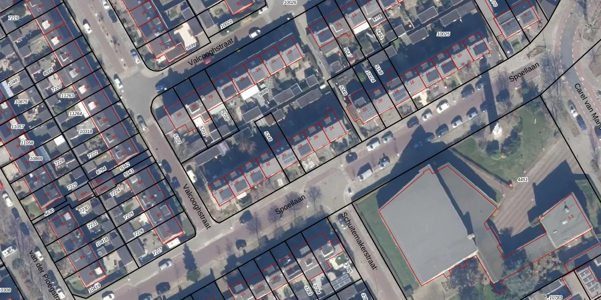 Het perceel waarop Spoellaan 28 staat heeft een oppervlakte van 2185 m². Dit is een zeer groot perceel. De perceeloppervlakte wordt geregistreerd door het Kadaster. Gedetailleerde informatie over de maten van dit perceel kunt u vinden in het rapport Kadastrale kaart met maatvoering van Spoellaan 28.