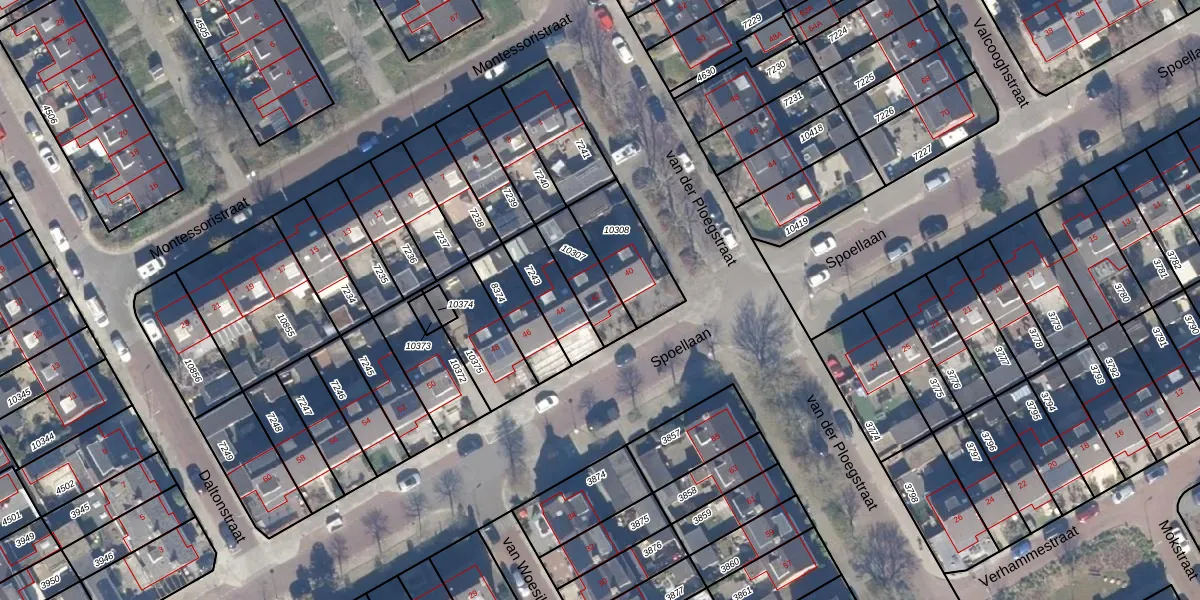 Het perceel waarop Spoellaan 42 staat heeft een oppervlakte van 150 m². Dit is een middelgroot perceel. De perceeloppervlakte wordt geregistreerd door het Kadaster. Gedetailleerde informatie over de maten van dit perceel kunt u vinden in het rapport Kadastrale kaart met maatvoering van Spoellaan 42.