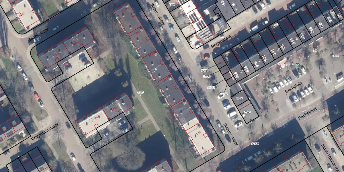 Het perceel waarop Strauszstraat 35 staat heeft een oppervlakte van 7035 m². Dit is een zeer groot perceel. De perceeloppervlakte wordt geregistreerd door het Kadaster. Gedetailleerde informatie over de maten van dit perceel kunt u vinden in het rapport Kadastrale kaart met maatvoering van Strauszstraat 35.