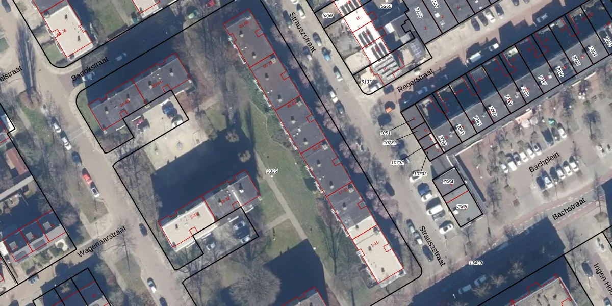 Het perceel waarop Strauszstraat 41 staat heeft een oppervlakte van 7035 m². Dit is een zeer groot perceel. De perceeloppervlakte wordt geregistreerd door het Kadaster. Gedetailleerde informatie over de maten van dit perceel kunt u vinden in het rapport Kadastrale kaart met maatvoering van Strauszstraat 41.