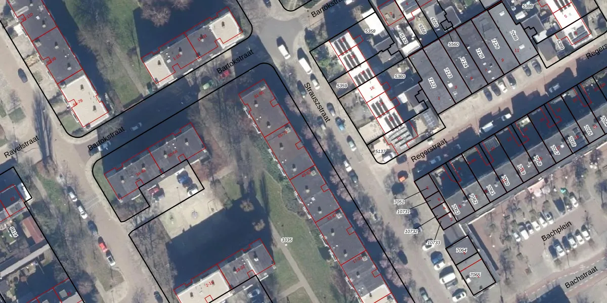 Het perceel waarop Strauszstraat 65 staat heeft een oppervlakte van 7035 m². Dit is een zeer groot perceel. De perceeloppervlakte wordt geregistreerd door het Kadaster. Gedetailleerde informatie over de maten van dit perceel kunt u vinden in het rapport Kadastrale kaart met maatvoering van Strauszstraat 65.