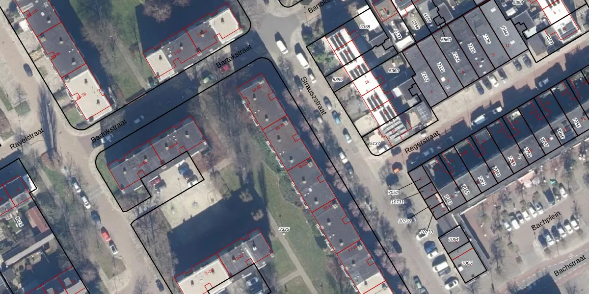 Het perceel waarop Strauszstraat 67 staat heeft een oppervlakte van 7035 m². Dit is een zeer groot perceel. De perceeloppervlakte wordt geregistreerd door het Kadaster. Gedetailleerde informatie over de maten van dit perceel kunt u vinden in het rapport Kadastrale kaart met maatvoering van Strauszstraat 67.