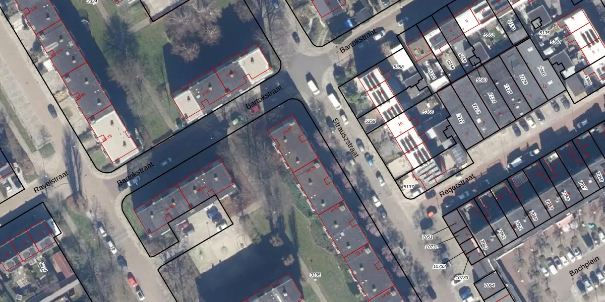 Het perceel waarop Strauszstraat 83 staat heeft een oppervlakte van 7035 m². Dit is een zeer groot perceel. De perceeloppervlakte wordt geregistreerd door het Kadaster. Gedetailleerde informatie over de maten van dit perceel kunt u vinden in het rapport Kadastrale kaart met maatvoering van Strauszstraat 83.