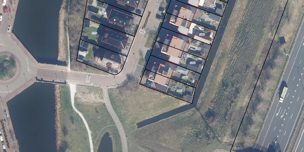 Het perceel waarop Stroomwal 2 staat heeft een oppervlakte van 378 m². Dit is een groot perceel. De perceeloppervlakte wordt geregistreerd door het Kadaster. Gedetailleerde informatie over de maten van dit perceel kunt u vinden in het rapport Kadastrale kaart met maatvoering van Stroomwal 2.