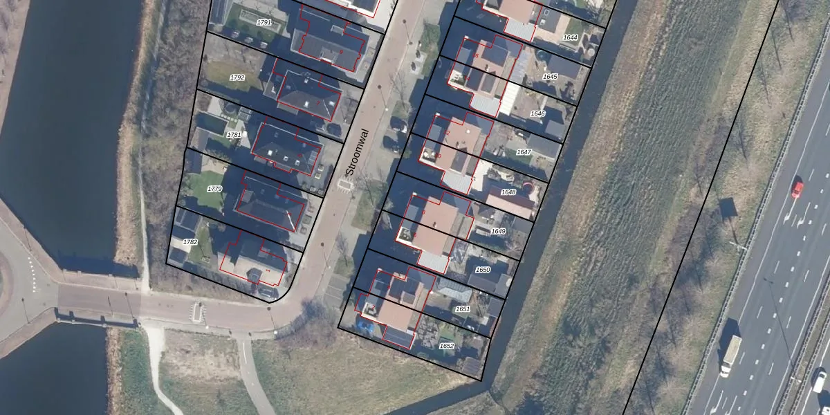 Het perceel waarop Stroomwal 8 staat heeft een oppervlakte van 353 m². Dit is een groot perceel. De perceeloppervlakte wordt geregistreerd door het Kadaster. Gedetailleerde informatie over de maten van dit perceel kunt u vinden in het rapport Kadastrale kaart met maatvoering van Stroomwal 8.
