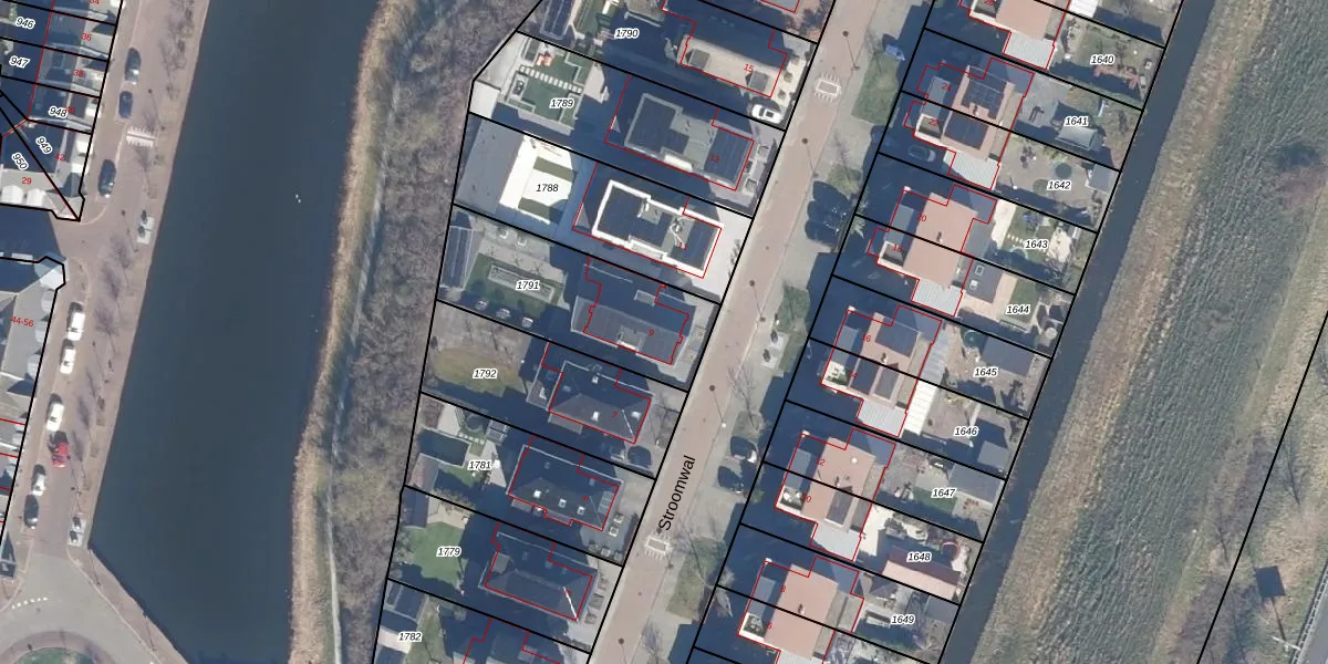 Het perceel waarop Stroomwal 9 staat heeft een oppervlakte van 598 m². Dit is een groot perceel. De perceeloppervlakte wordt geregistreerd door het Kadaster. Gedetailleerde informatie over de maten van dit perceel kunt u vinden in het rapport Kadastrale kaart met maatvoering van Stroomwal 9.