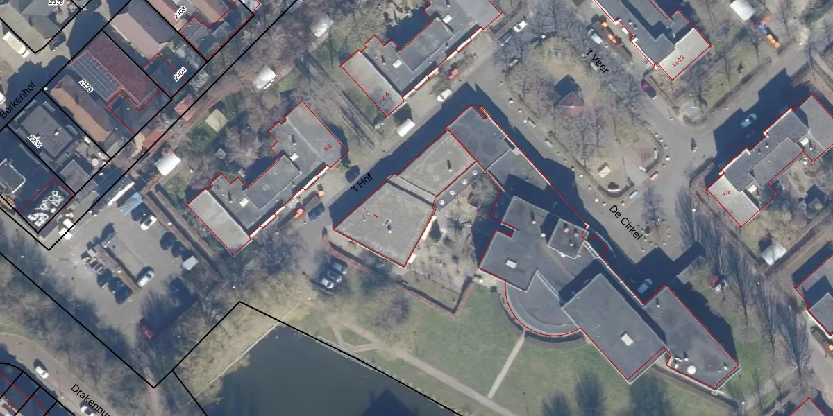 Het perceel waarop 't Hof 1 staat heeft een oppervlakte van 5,3 ha. Dit is een zeer groot perceel. De perceeloppervlakte wordt geregistreerd door het Kadaster. Gedetailleerde informatie over de maten van dit perceel kunt u vinden in het rapport Kadastrale kaart met maatvoering van 't Hof 1.
