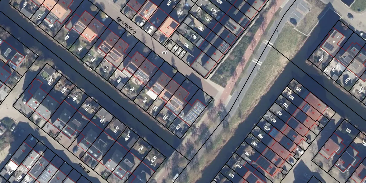 Gebruik de zoekbalk of klik op een perceel voor informatie over de adressen binnen dit perceel.