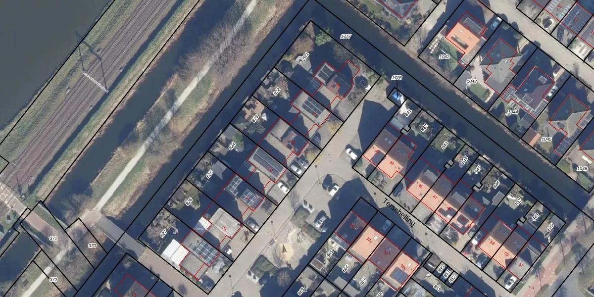 Het perceel waarop Terschelling 35 staat heeft een oppervlakte van 360 m². Dit is een groot perceel. De perceeloppervlakte wordt geregistreerd door het Kadaster. Gedetailleerde informatie over de maten van dit perceel kunt u vinden in het rapport Kadastrale kaart met maatvoering van Terschelling 35.