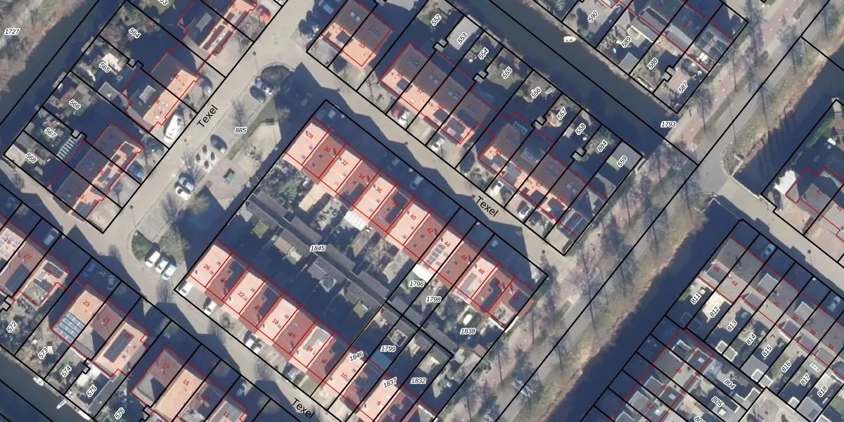 Texel 40 is gelegen op kadastraal perceel HKK01F1845. Deze kadastrale aanduiding is uniek en wordt gebruikt door het Kadaster om eigendomsrechten en andere zakelijke rechten vast te leggen. Het perceel maakt onderdeel uit van de kadastrale gemeente Heemskerk.
