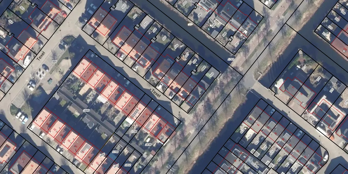 Het perceel waarop Texel 67 staat heeft een oppervlakte van 180 m². Dit is een middelgroot perceel. De perceeloppervlakte wordt geregistreerd door het Kadaster. Gedetailleerde informatie over de maten van dit perceel kunt u vinden in het rapport Kadastrale kaart met maatvoering van Texel 67.
