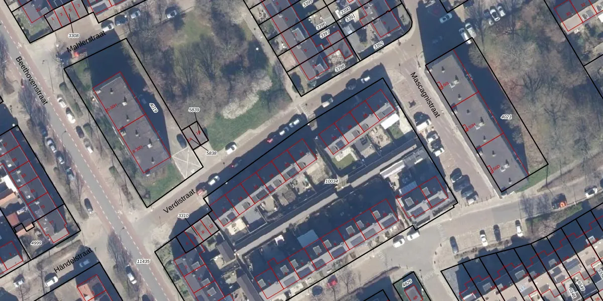 Het perceel waarop Verdistraat 22 staat heeft een oppervlakte van 4080 m². Dit is een zeer groot perceel. De perceeloppervlakte wordt geregistreerd door het Kadaster. Gedetailleerde informatie over de maten van dit perceel kunt u vinden in het rapport Kadastrale kaart met maatvoering van Verdistraat 22.