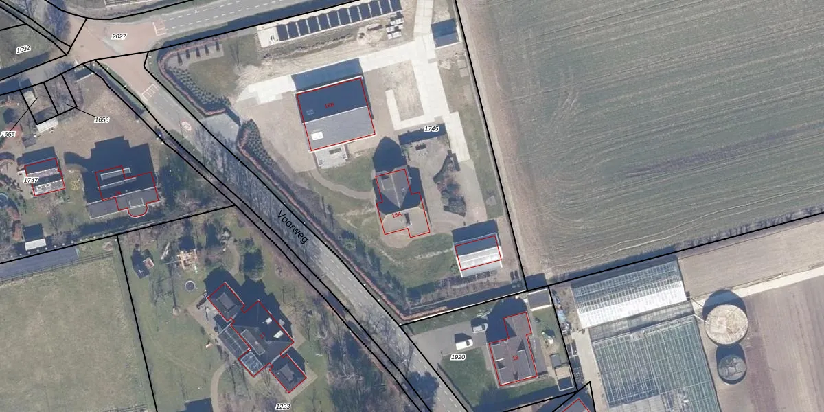 Het perceel waarop Voorweg 18-A staat heeft een oppervlakte van 4355 m². Dit is een zeer groot perceel. De perceeloppervlakte wordt geregistreerd door het Kadaster. Gedetailleerde informatie over de maten van dit perceel kunt u vinden in het rapport Kadastrale kaart met maatvoering van Voorweg 18-A.
