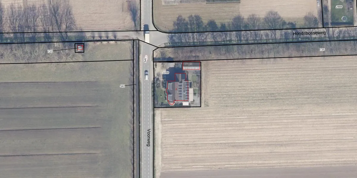 Het perceel waarop Voorweg 2 staat heeft een oppervlakte van 660 m². Dit is een groot perceel. De perceeloppervlakte wordt geregistreerd door het Kadaster. Gedetailleerde informatie over de maten van dit perceel kunt u vinden in het rapport Kadastrale kaart met maatvoering van Voorweg 2.
