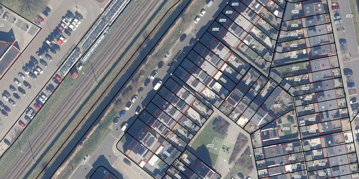 Het perceel waarop Vuursteen 68 staat heeft een oppervlakte van 185 m². Dit is een middelgroot perceel. De perceeloppervlakte wordt geregistreerd door het Kadaster. Gedetailleerde informatie over de maten van dit perceel kunt u vinden in het rapport Kadastrale kaart met maatvoering van Vuursteen 68.