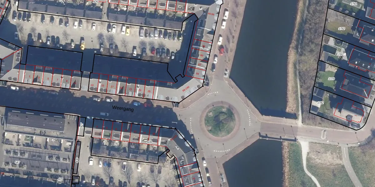 Het perceel waarop Weverskwartier 80 staat heeft een oppervlakte van 4845 m². Dit is een zeer groot perceel. De perceeloppervlakte wordt geregistreerd door het Kadaster. Gedetailleerde informatie over de maten van dit perceel kunt u vinden in het rapport Kadastrale kaart met maatvoering van Weverskwartier 80.