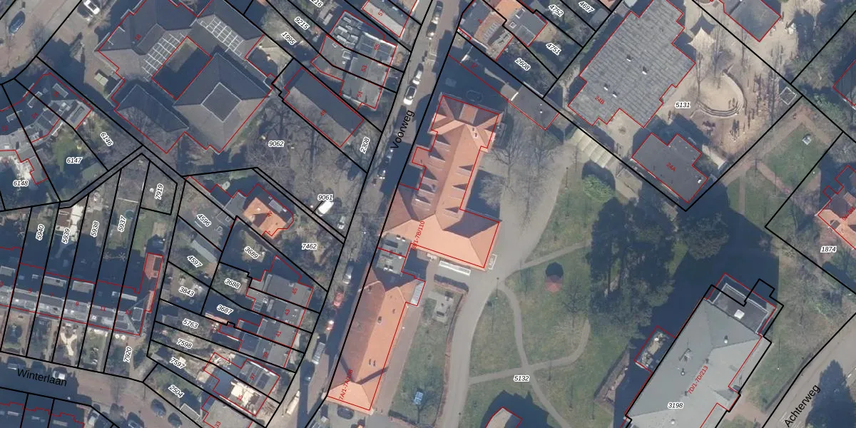 Het perceel waarop Achterweg 7-B-107 staat heeft een oppervlakte van 2,1 ha. Dit is een zeer groot perceel. De perceeloppervlakte wordt geregistreerd door het Kadaster. Gedetailleerde informatie over de maten van dit perceel kunt u vinden in het rapport Kadastrale kaart met maatvoering van Achterweg 7-B-107.