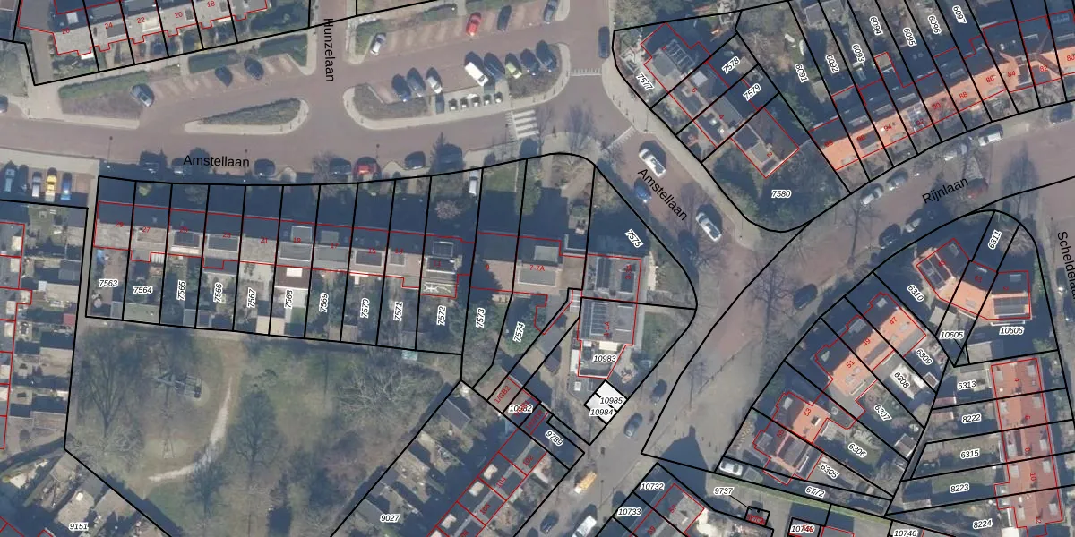 Amstellaan 7 is gelegen op kadastraal perceel HSD01B7574. Deze kadastrale aanduiding is uniek en wordt gebruikt door het Kadaster om eigendomsrechten en andere zakelijke rechten vast te leggen. Het perceel maakt onderdeel uit van de kadastrale gemeente Heemstede.