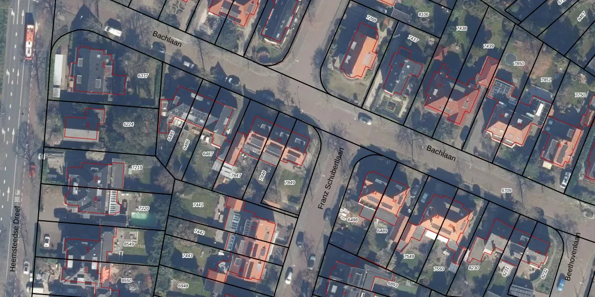 Bachlaan 12 is gelegen op kadastraal perceel HSD01A7849. Deze kadastrale aanduiding is uniek en wordt gebruikt door het Kadaster om eigendomsrechten en andere zakelijke rechten vast te leggen. Het perceel maakt onderdeel uit van de kadastrale gemeente Heemstede.
