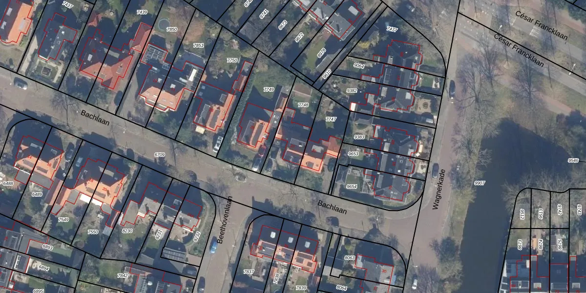Het perceel waarop Bachlaan 27 staat heeft een oppervlakte van 385 m². Dit is een groot perceel. De perceeloppervlakte wordt geregistreerd door het Kadaster. Gedetailleerde informatie over de maten van dit perceel kunt u vinden in het rapport Kadastrale kaart met maatvoering van Bachlaan 27.