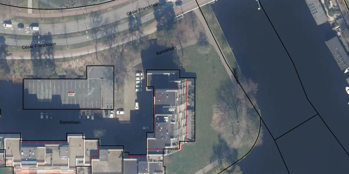 Bartoklaan 106 is gelegen op kadastraal perceel HSD01A8727. Deze kadastrale aanduiding is uniek en wordt gebruikt door het Kadaster om eigendomsrechten en andere zakelijke rechten vast te leggen. Het perceel maakt onderdeel uit van de kadastrale gemeente Heemstede.