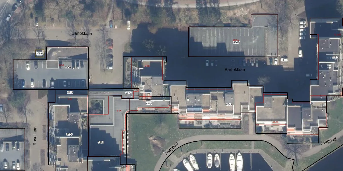 Het perceel waarop Bartoklaan 16 staat heeft een oppervlakte van 2116 m². Dit is een zeer groot perceel. De perceeloppervlakte wordt geregistreerd door het Kadaster. Gedetailleerde informatie over de maten van dit perceel kunt u vinden in het rapport Kadastrale kaart met maatvoering van Bartoklaan 16.