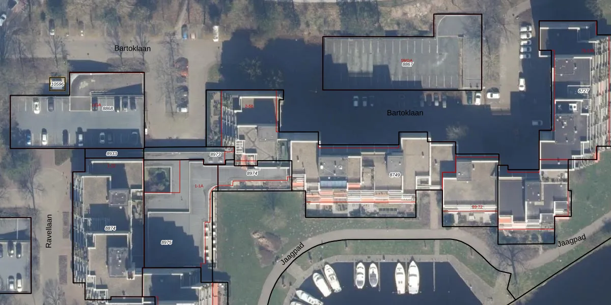 Het perceel waarop Bartoklaan 31 staat heeft een oppervlakte van 2116 m². Dit is een zeer groot perceel. De perceeloppervlakte wordt geregistreerd door het Kadaster. Gedetailleerde informatie over de maten van dit perceel kunt u vinden in het rapport Kadastrale kaart met maatvoering van Bartoklaan 31.