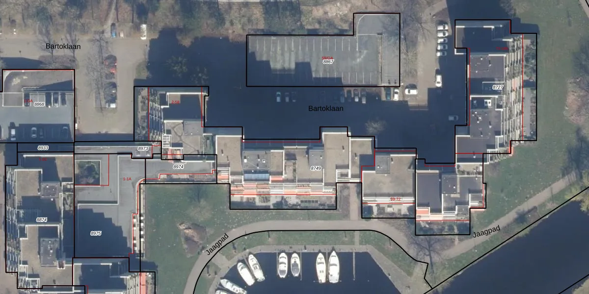 Het perceel waarop Bartoklaan 49-A staat heeft een oppervlakte van 2116 m². Dit is een zeer groot perceel. De perceeloppervlakte wordt geregistreerd door het Kadaster. Gedetailleerde informatie over de maten van dit perceel kunt u vinden in het rapport Kadastrale kaart met maatvoering van Bartoklaan 49-A.