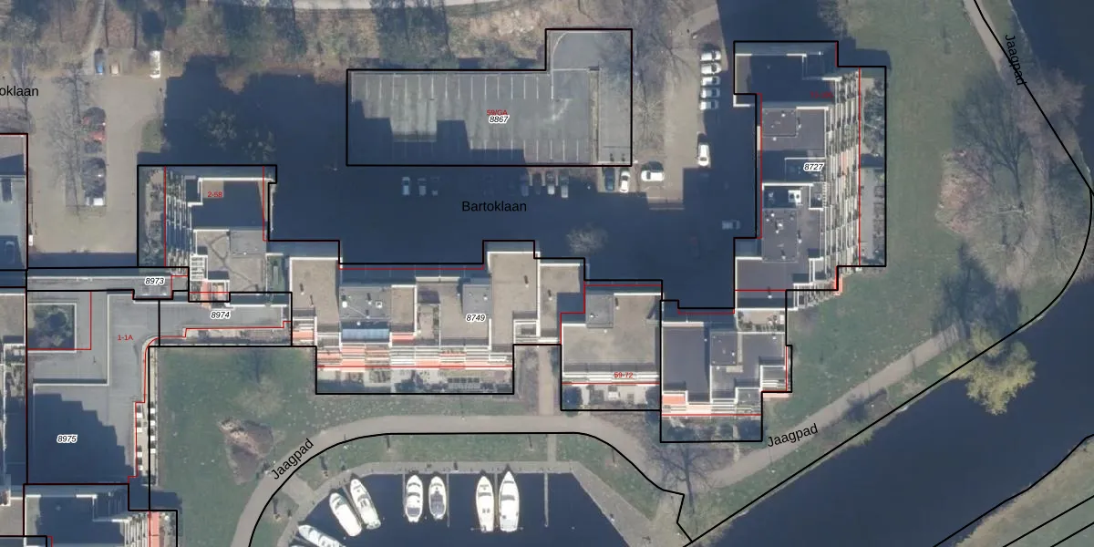 Het perceel waarop Bartoklaan 50 staat heeft een oppervlakte van 2116 m². Dit is een zeer groot perceel. De perceeloppervlakte wordt geregistreerd door het Kadaster. Gedetailleerde informatie over de maten van dit perceel kunt u vinden in het rapport Kadastrale kaart met maatvoering van Bartoklaan 50.
