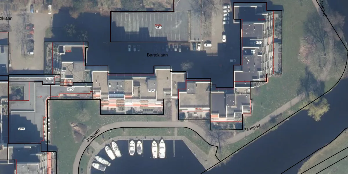Het perceel waarop Bartoklaan 55 staat heeft een oppervlakte van 2116 m². Dit is een zeer groot perceel. De perceeloppervlakte wordt geregistreerd door het Kadaster. Gedetailleerde informatie over de maten van dit perceel kunt u vinden in het rapport Kadastrale kaart met maatvoering van Bartoklaan 55.