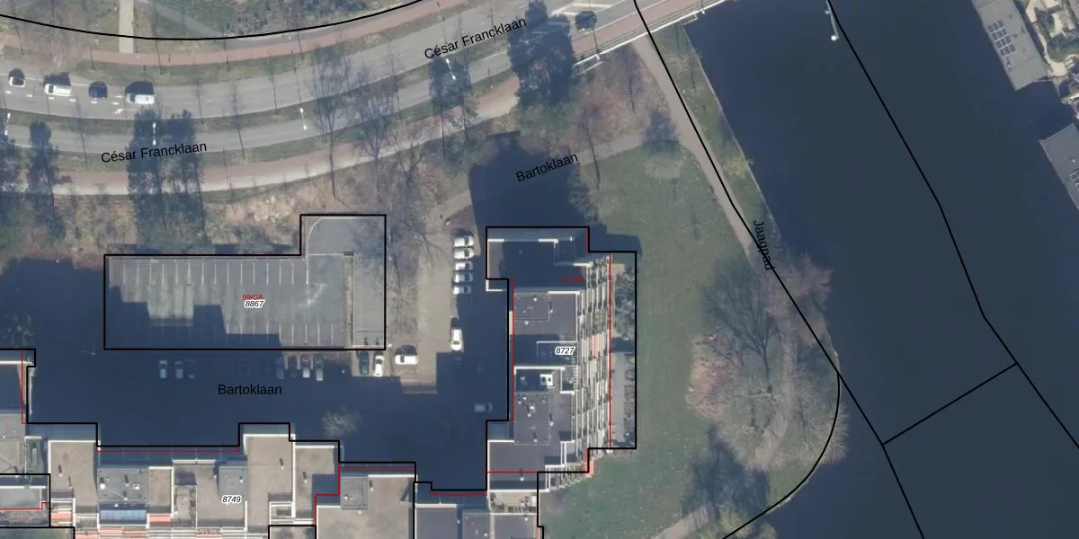 Het perceel waarop Bartoklaan 96 staat heeft een oppervlakte van 1642 m². Dit is een zeer groot perceel. De perceeloppervlakte wordt geregistreerd door het Kadaster. Gedetailleerde informatie over de maten van dit perceel kunt u vinden in het rapport Kadastrale kaart met maatvoering van Bartoklaan 96.