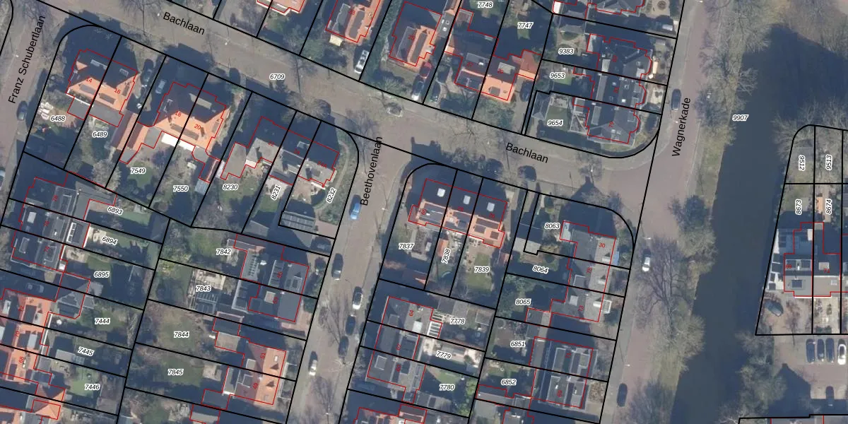 Gebruik de zoekbalk of klik op een perceel voor informatie over de adressen binnen dit perceel.