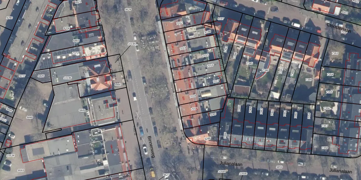 Het perceel waarop Binnenweg 126 staat heeft een oppervlakte van 196 m². Dit is een middelgroot perceel. De perceeloppervlakte wordt geregistreerd door het Kadaster. Gedetailleerde informatie over de maten van dit perceel kunt u vinden in het rapport Kadastrale kaart met maatvoering van Binnenweg 126.