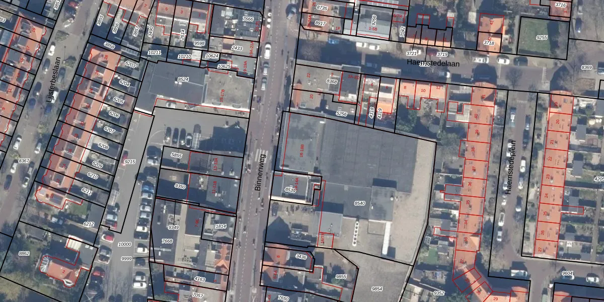 Het perceel waarop Binnenweg 16 staat heeft een oppervlakte van 2039 m². Dit is een zeer groot perceel. De perceeloppervlakte wordt geregistreerd door het Kadaster. Gedetailleerde informatie over de maten van dit perceel kunt u vinden in het rapport Kadastrale kaart met maatvoering van Binnenweg 16.