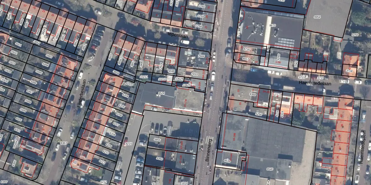 Het perceel waarop Binnenweg 17 staat heeft een oppervlakte van 555 m². Dit is een groot perceel. De perceeloppervlakte wordt geregistreerd door het Kadaster. Gedetailleerde informatie over de maten van dit perceel kunt u vinden in het rapport Kadastrale kaart met maatvoering van Binnenweg 17.