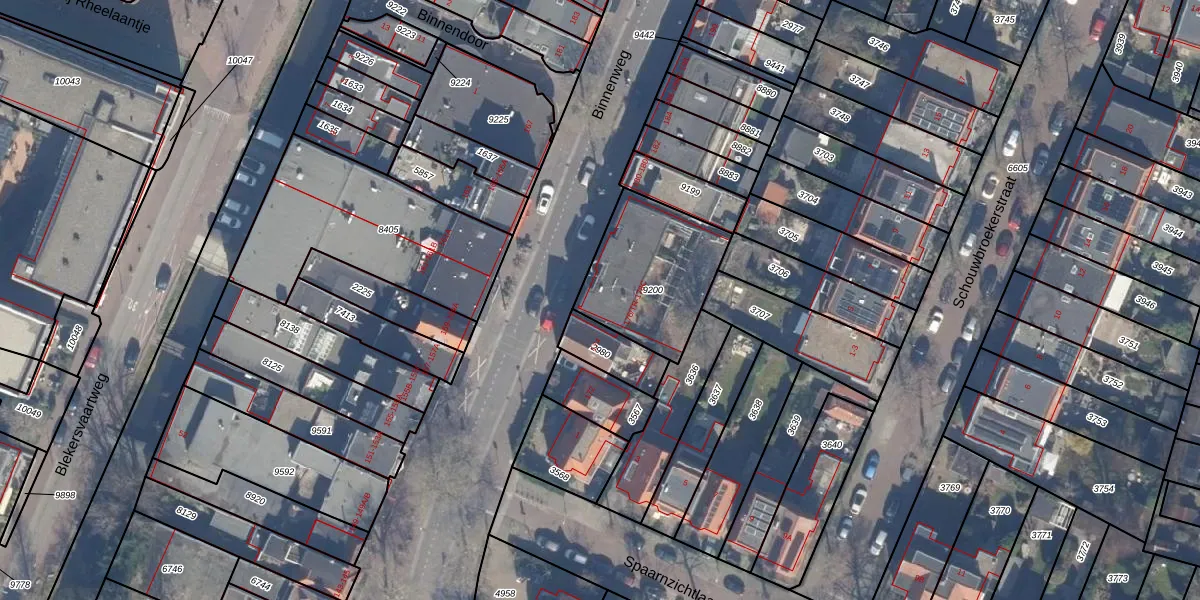 Het perceel waarop Binnenweg 176-A staat heeft een oppervlakte van 465 m². Dit is een groot perceel. De perceeloppervlakte wordt geregistreerd door het Kadaster. Gedetailleerde informatie over de maten van dit perceel kunt u vinden in het rapport Kadastrale kaart met maatvoering van Binnenweg 176-A.