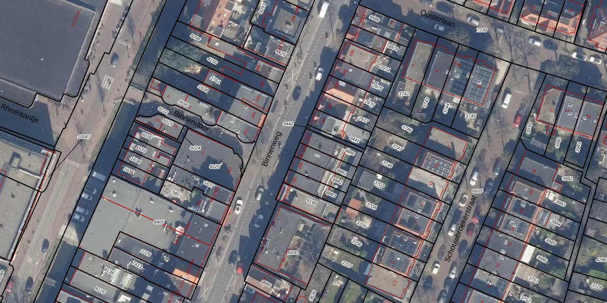 Het perceel waarop Binnenweg 186 staat heeft een oppervlakte van 99 m². Dit is een klein perceel. De perceeloppervlakte wordt geregistreerd door het Kadaster. Gedetailleerde informatie over de maten van dit perceel kunt u vinden in het rapport Kadastrale kaart met maatvoering van Binnenweg 186.