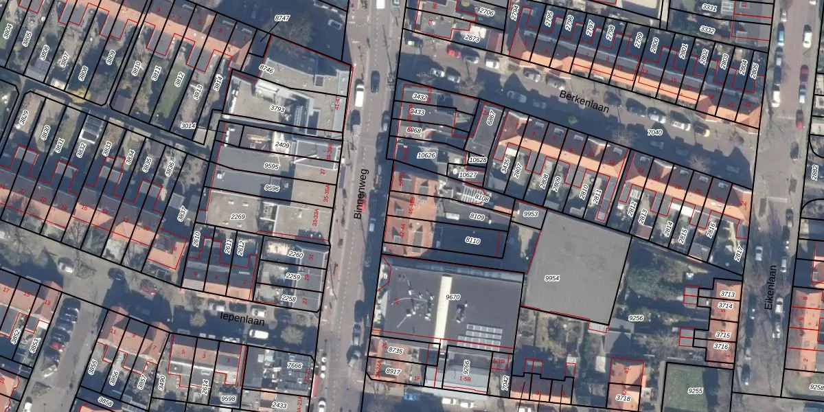Het perceel waarop Binnenweg 48-A staat heeft een oppervlakte van 174 m². Dit is een middelgroot perceel. De perceeloppervlakte wordt geregistreerd door het Kadaster. Gedetailleerde informatie over de maten van dit perceel kunt u vinden in het rapport Kadastrale kaart met maatvoering van Binnenweg 48-A.