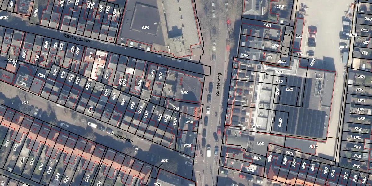 Het perceel waarop Binnenweg 57 staat heeft een oppervlakte van 351 m². Dit is een groot perceel. De perceeloppervlakte wordt geregistreerd door het Kadaster. Gedetailleerde informatie over de maten van dit perceel kunt u vinden in het rapport Kadastrale kaart met maatvoering van Binnenweg 57.