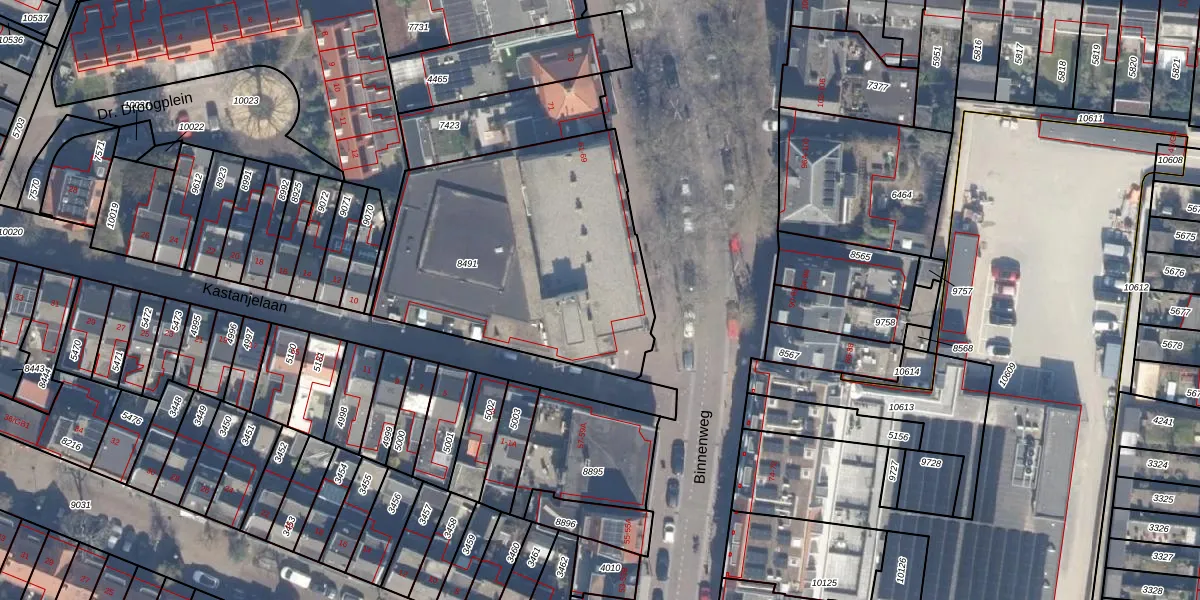 Het perceel waarop Binnenweg 61 staat heeft een oppervlakte van 1375 m². Dit is een zeer groot perceel. De perceeloppervlakte wordt geregistreerd door het Kadaster. Gedetailleerde informatie over de maten van dit perceel kunt u vinden in het rapport Kadastrale kaart met maatvoering van Binnenweg 61.