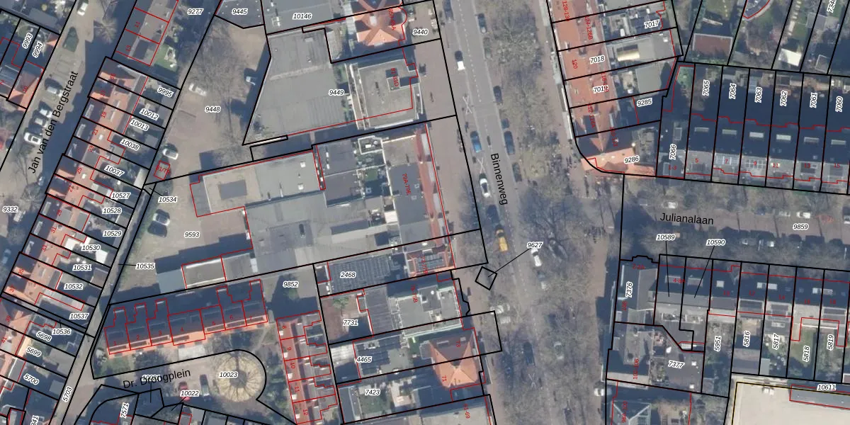 Het perceel waarop Binnenweg 79 staat heeft een oppervlakte van 2165 m². Dit is een zeer groot perceel. De perceeloppervlakte wordt geregistreerd door het Kadaster. Gedetailleerde informatie over de maten van dit perceel kunt u vinden in het rapport Kadastrale kaart met maatvoering van Binnenweg 79.