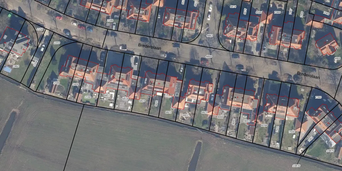 Brederolaan 17 is gelegen op kadastraal perceel HSD01B6821. Deze kadastrale aanduiding is uniek en wordt gebruikt door het Kadaster om eigendomsrechten en andere zakelijke rechten vast te leggen. Het perceel maakt onderdeel uit van de kadastrale gemeente Heemstede.