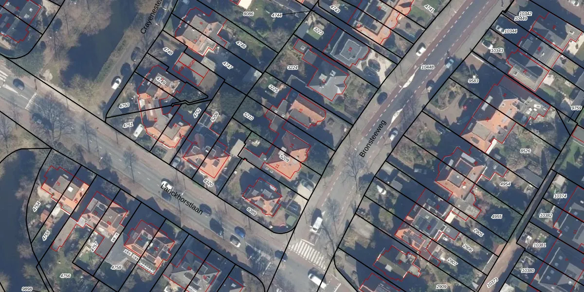 Het perceel waarop Bronsteeweg 13 staat heeft een oppervlakte van 341 m². Dit is een groot perceel. De perceeloppervlakte wordt geregistreerd door het Kadaster. Gedetailleerde informatie over de maten van dit perceel kunt u vinden in het rapport Kadastrale kaart met maatvoering van Bronsteeweg 13.